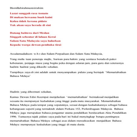 Hadirin yang saya muliakan dalam sektor pendidikan pula bahasa melayu digunakan sebagai contoh teks syarahan. Bahasa melayu citra bangsa malaysia. Mari Belajar Bahasa Melayu Surat Kiriman Rasmi.