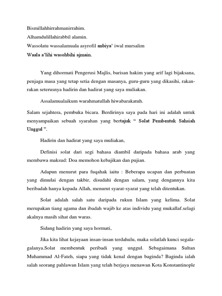 Up to 3 cash back Selamat pagi saya ucapkan kepada Tuan Pengerusi Majlis para hakim yang arif lagi. Iman yang m antap. Pertandingan tersebut bertarikh 12 April 2019 bertempat di Dewan Masjid Maahad Pengajian Islam Kelantan.
